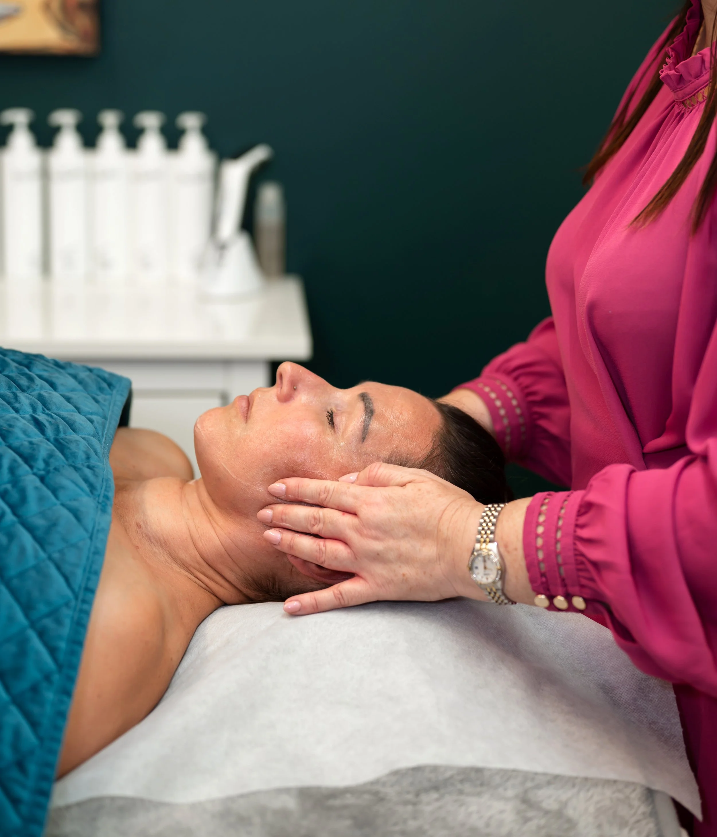 Incorporating cranial therapy and TMJ release, both externally and through specialised intraoral techniques, we are able to soften deep-held tension, improve blood flow and encourage optimal lymphatic drainage. This supports detoxification, reduces puffiness and allows your skin to function at its highest level.